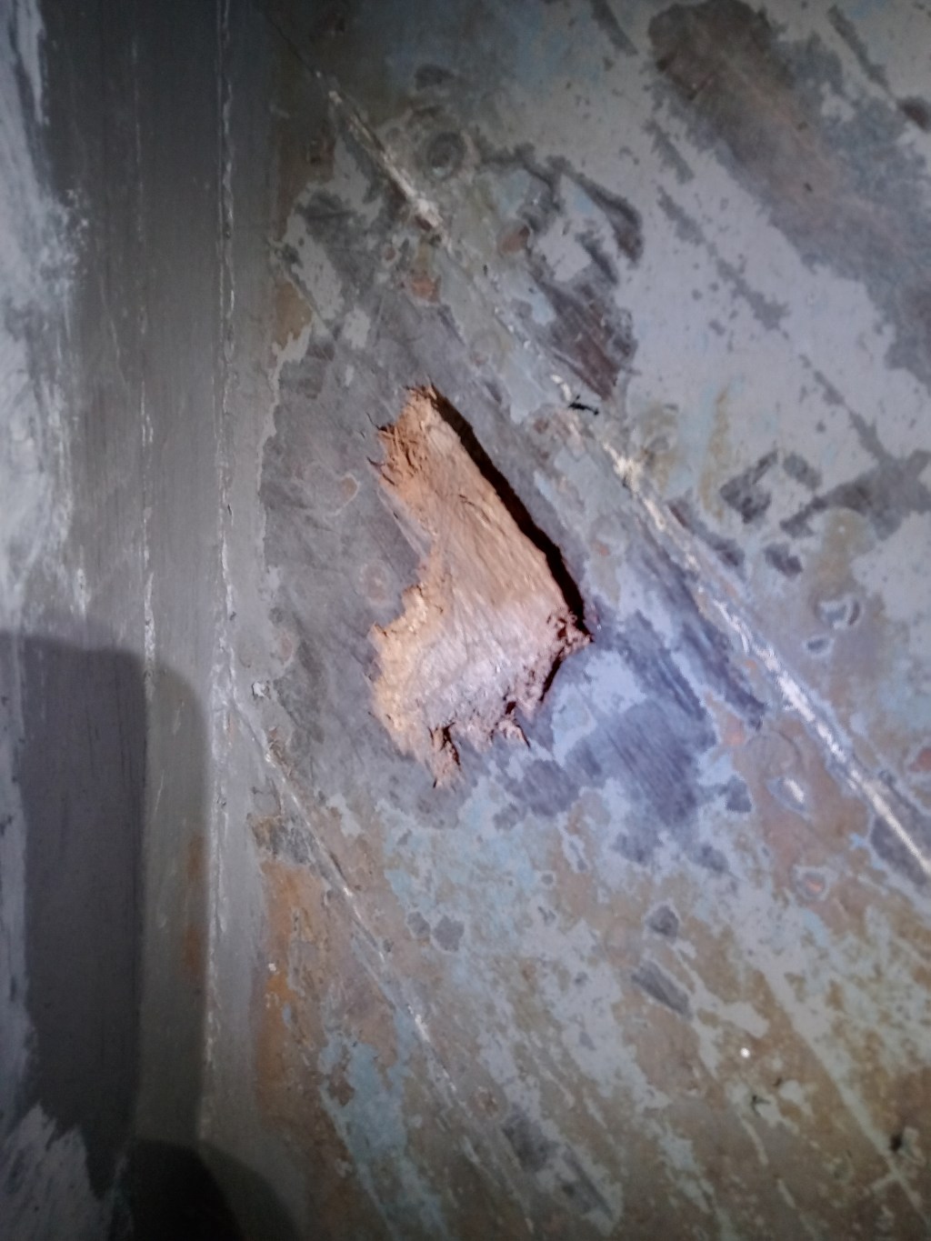 I was so close to getting the stern hold complete this week. I thought I’d had it cracked. Whilst scraping off the last bit of old paintwork and rust streaks in a tucked-away corner last night, it seemed a part of the inner hull planking felt a bit ‘hollow’ under my scraper.